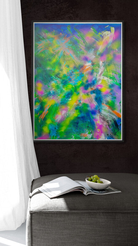 "Collors – En Fest af Farver" er et originalt, håndmalet kunstværk skabt af den danske kunstner Thomas Dupont. Dette farverige og energiske abstrakte maleri i akrylmaling er et visuelt festfyrværkeri, der bringer liv og dynamik til ethvert rum.